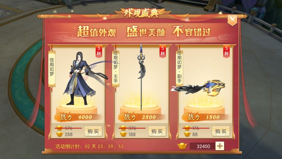 活动内容:超值外观,盛世美颜,限时福利优惠买时装!