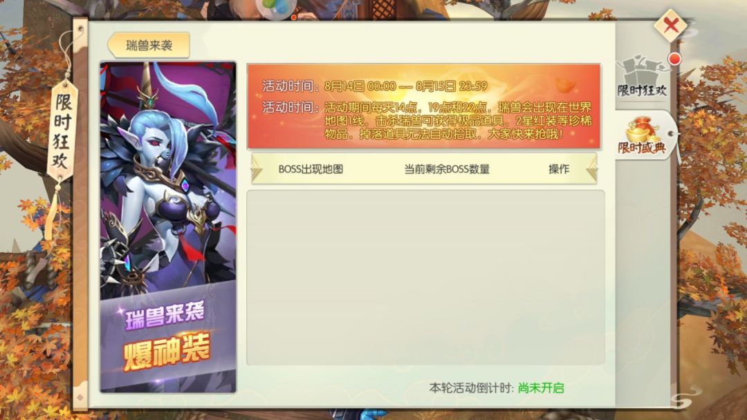 活动内容:活动期间每天14点,19点和22点,瑞兽会出现在世界地图1线,击杀瑞兽可以获得极品道具,掉落道具无法自动拾取,大家快来抢哟!