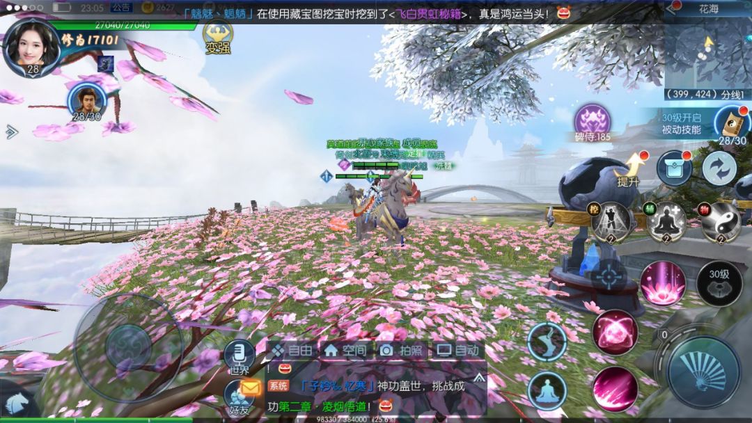 1. 游戏画面细腻唯美,精细程度堪比端游。打开游戏界面,伴随着浓郁典雅的丝竹配乐,清灵的仙侠画风扑面而来,有身临其境之感。尤其是进入游戏前的一段片头动画,制作精良,可谓大气磅礴。游戏中,无论是古建筑还是花海竹林亦是曲径小路的设计都非常细腻唯美,与游戏中光影的结合为游戏画面大大的加分,精美程度堪比端游。另外,手游中的人物采用电视剧原班配音人马,代入感很强。