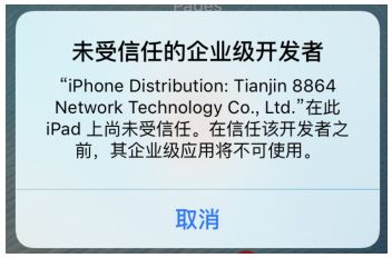 首次启动游戏前需【信任】应用官方签名,看到此提示点击【取消】关闭即可;