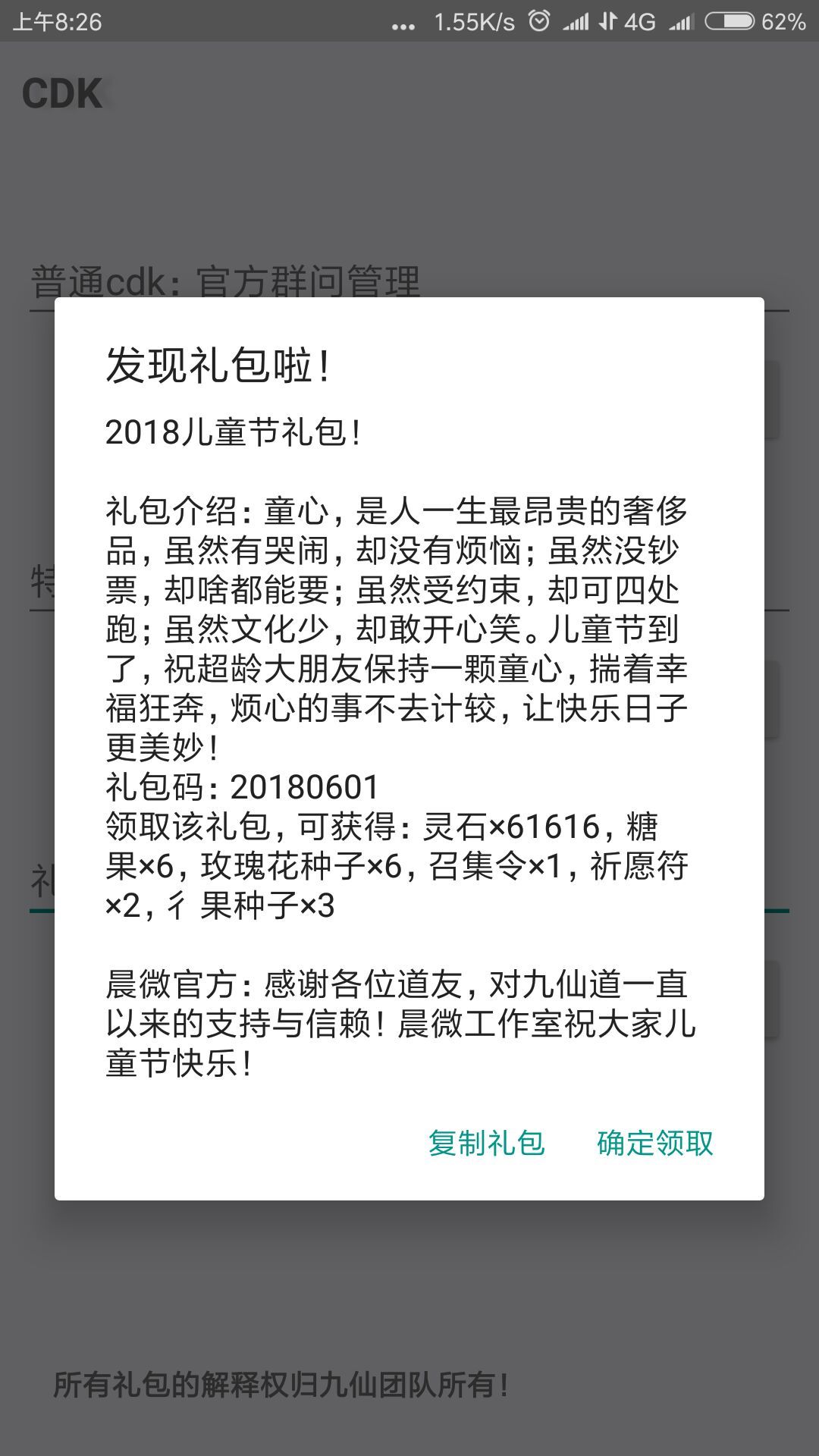 !!!2018年8月17日新增cdk“七夕礼包”: