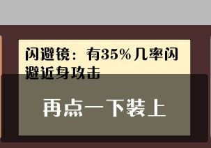 目前防御方式有4种,但它们也是和攻击一样需要在战斗中使用,并且需要消耗回合,目前装备有闪避盾(提高35%闪避率),反伤盾(40%几率抵挡50%的近身伤害伤害),荆棘盾(反弹近身35%伤害),抗伤盾(减少30%伤害)