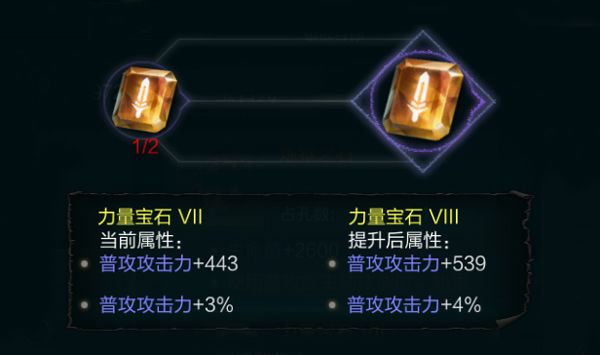 以力量宝石为例子,2个7级宝石+6%普攻攻击力,1个8级宝石+4%普攻攻击力,那么2个7级宝石的增益效果就大于1个8级宝石。