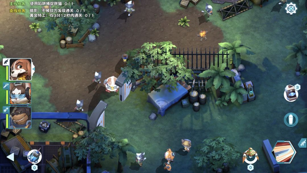 这关的技巧就是卡准每个猫的视线,躲开猫咪悄悄的走到控制大门开关控制台旁边的空地上,放置陷阱就可以了。最重要的就是躲避猫咪的视线,从他身边悄悄的躲过去。