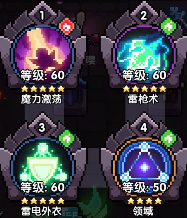 日常就这四个技能最舒服,跑图冲冲冲就行了(激荡也可以换雷衣,看自身回蓝高低抉择)