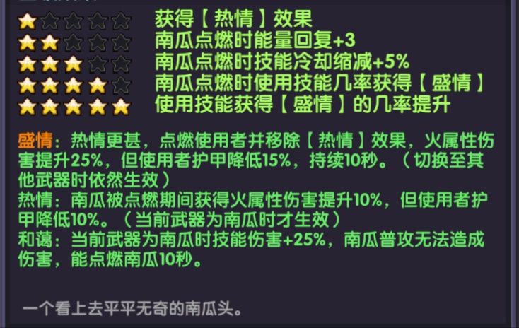 南瓜可以说是适合作为所有输出职业的主手武器。25%的技能伤害足以让这把武器在武器榜上单枪直入一马平川,并且南瓜在点燃后可以触发能量回复+3技能冷却缩减+5%的效果,也很nice,但南瓜更适合玩火火火的职业,毕竟它还有35%火属性伤害提升。所以对于雷法来说,南瓜是主手武器的第二选择。