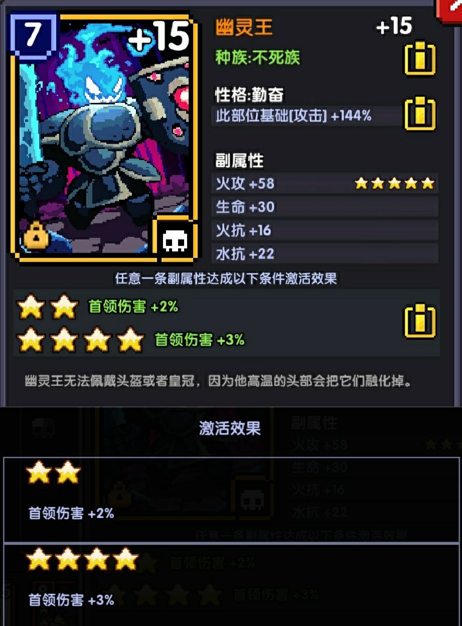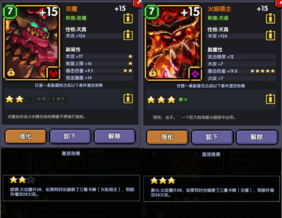 主属性选择木攻,词条尽量爆伤或木攻。为什么选择火基佬呢。是因为法师55级有一个天赋,点满之后除最高属性之外的其他两个属性30%伤害增加到最高属性上。所以火基佬的3星触发效果有用的是,但不用刻意追求三星,词条好就可以。