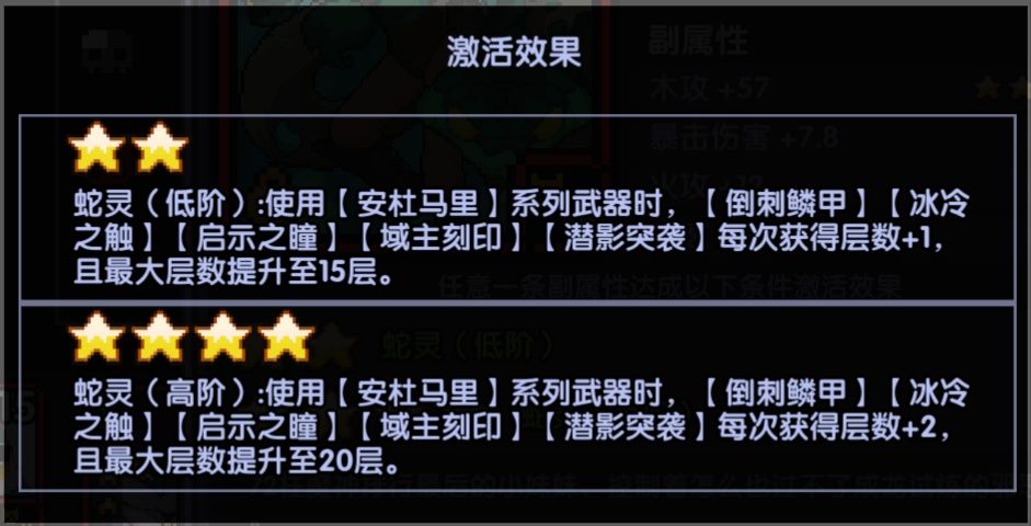 安杜马里这张魂卡呢,主要效果就是它的2星和4星的这两个技能。咱们直接讲4星触发技能吧。4星触发技能是域主刻印每次增加层数+2(也就是你原来每次增加的层数是2,有了这个4星触发技能你每次增加的层数就是变为4了)还有刻印最大层数上限提升至20层(只有蛇杖的情况下刻印上限是10层,有了4星安杜马里就能提升到20层的刻印),想象一下,一层的刻印是1%的全元素伤害加3%的雷枪触发率,那么20层就是20%的全元素伤害加60%的雷枪触发率!我吹爆!