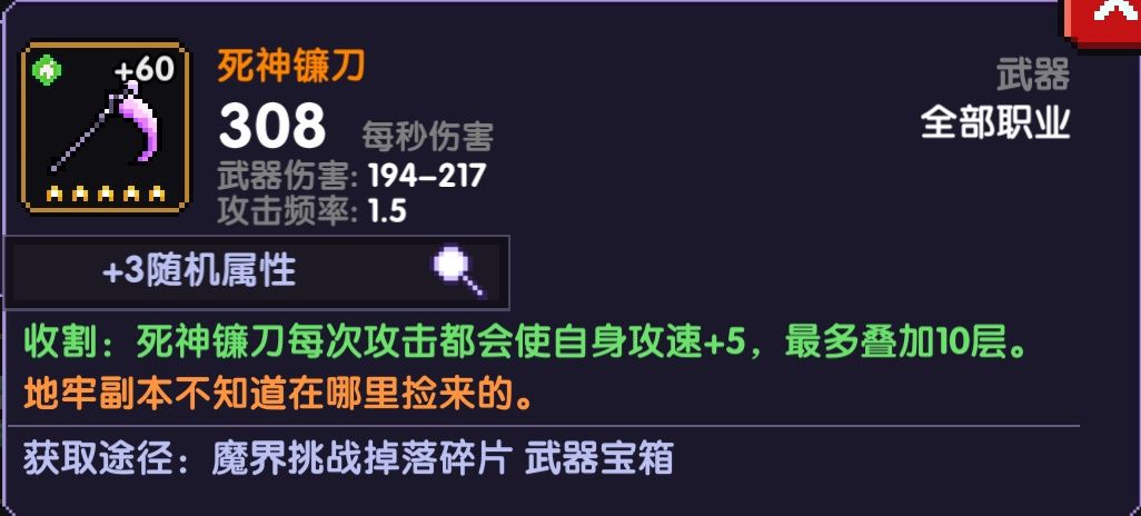 这两把武器的属性非常优秀,死神镰刀上榜的原因是因为它的穿甲非常高,足以媲美一些红武(两把蛇之前我是两把死神镰刀)。屠龙刀我想大家应该都有,毕竟免费领的,不过这两把武器4星就可以,5星不值得。
