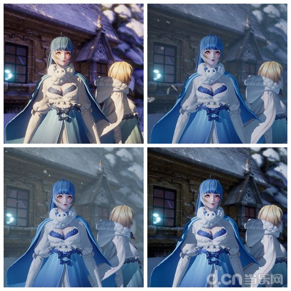 当你想合影留念,你会有晴空雨雪等多种不同的选项,你能看出不同的设定场景中,有多少差异化的光效表现。