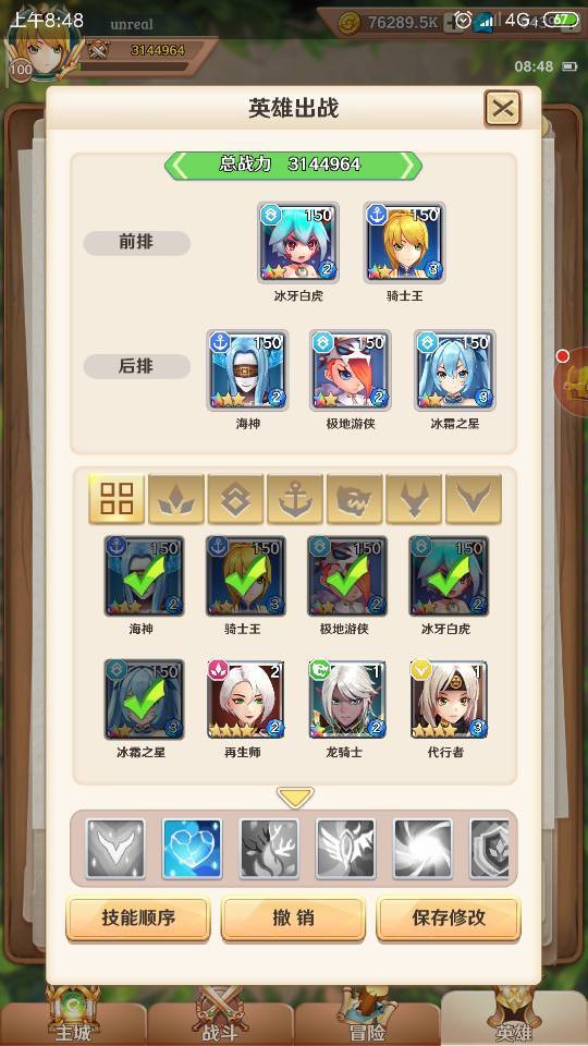 2、对阵水木队同等战力,双海神加木法阵容46开(瑟瑟发抖),其他水木阵容73开