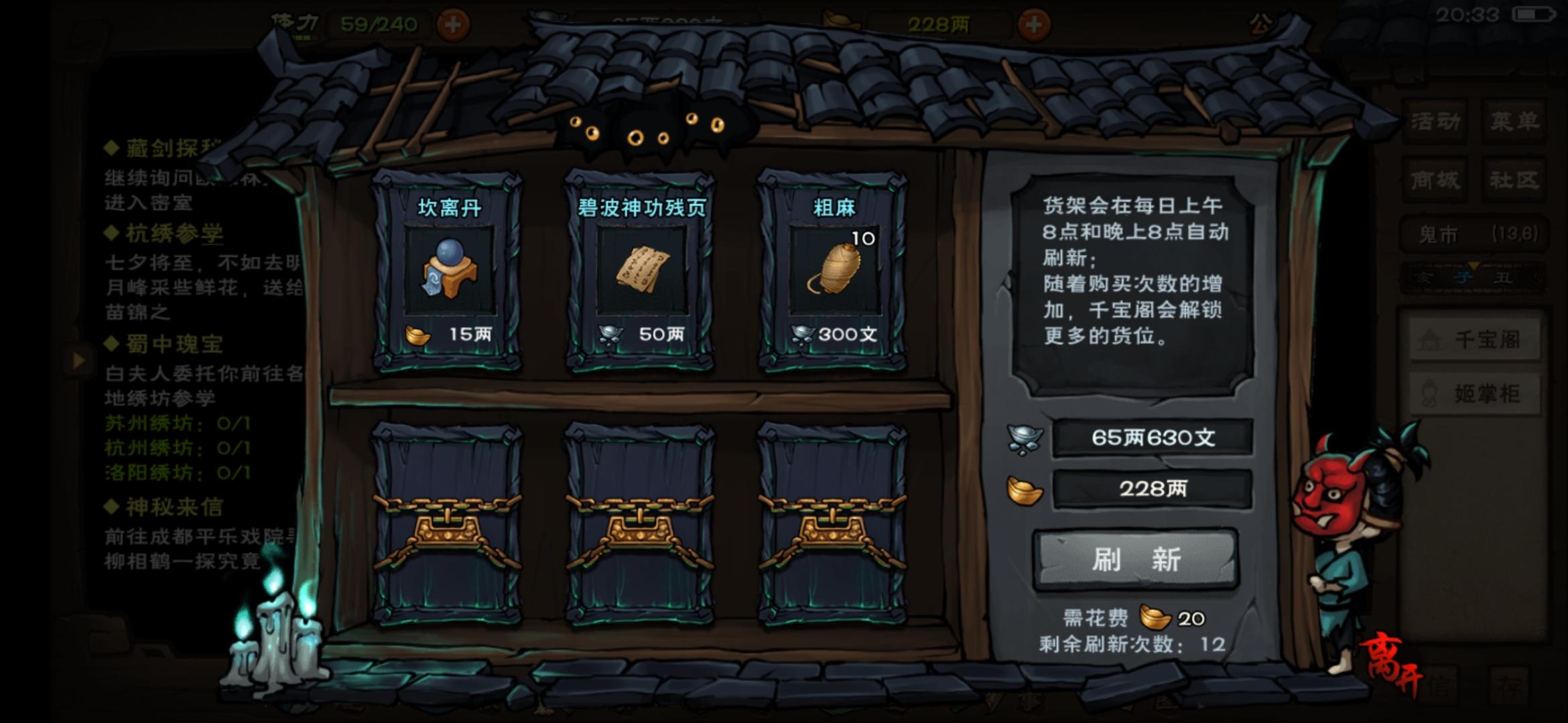 我就想买个碎虚指,老不给我机会,黑市老是出东西,一天来两个,谁顶得住,烦的很。还有虎皮帽也没钱买😇