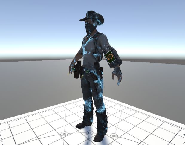 最大的难点其实是来自自我隐身的美术表现。我们想告诉玩家,在游戏里你是隐身的状态,你捡起来的东西也会变成隐身状态;但同时我们又需要告诉玩家,你拿在手里的物品到底是什么。显然那样东西并不能真正的隐身。一些效果过于明显的半透明材质也不行,这会遮挡物品的本来面目。经过半年多的迭代,我们最终选择了一个流光效果,用不断流动的特效光来表现隐身。
