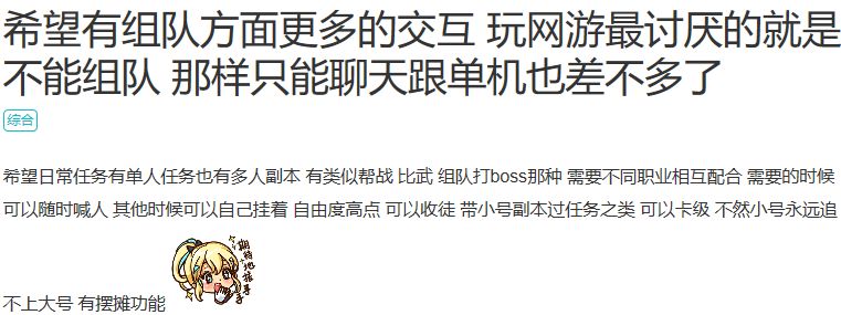 (今天的分享基本都是文字,有兴趣看完的同学请做好心理准备)原本今天的计划是分享一下昨天没说完的关于战斗表现部分中,角色战斗相关内容的。但正好看到了两位同学提出了一个我们曾经也特别纠结的问题,关于“社交”。所以本着玩家们的建议和疑问优先处理和解决的宗旨,今天就先分享一下我们关于社交的抉择。这边先感谢名为“念青”和“辉哥”的玩家率先提出了这个问题,如果本次测试没有抽到激活码的话,可以私信我(前提是你们能看到这边文章^_^)。好了,暂时引用一下“念青”和 “辉哥”同学的帖子截图