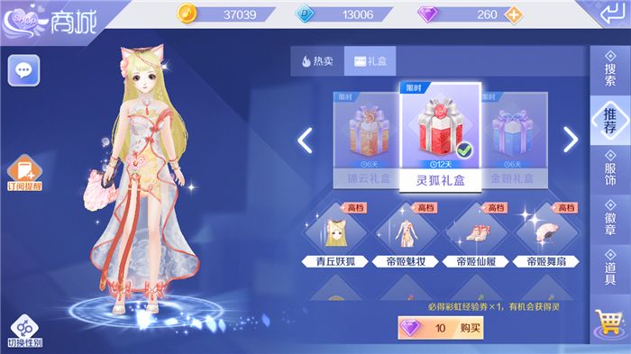 那么在QQ炫舞手游中的灵狐套系如何获得呢?在商城中消费10钻可以购买一个灵狐礼盒,每个礼盒都可以进行一次抽奖,奖品除了必得彩虹经验券外,还有机会获得灵狐光效套系“青丘帝姬”“青丘狐仙”部件哦!