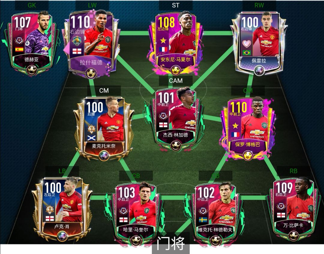 曼联锋线上,右边锋为七夕佩雷拉,相当遥远的一张卡,实力放在今日可以说是谁都可以欺负他。不过曼联锋线的另外两名球员可就不是容易对付的角色了。前锋为108未来之星马夏尔,作为箭头人物的冲击力不是很强,不过过人突破十分拿手,得分能力不俗。左边锋为110闪回巅峰拉什福德,闪回巅峰球员可以说是不逊色于传奇球员。这场闪回拉什福德的速度和突破能力可以说是游戏里天花板水平,射门能力也是顶级,身体对抗一般,不过对球的控制十分不错。可以说在游戏里沉寂许久的拉什福德重新成为了玩家梦寐以求的球员。