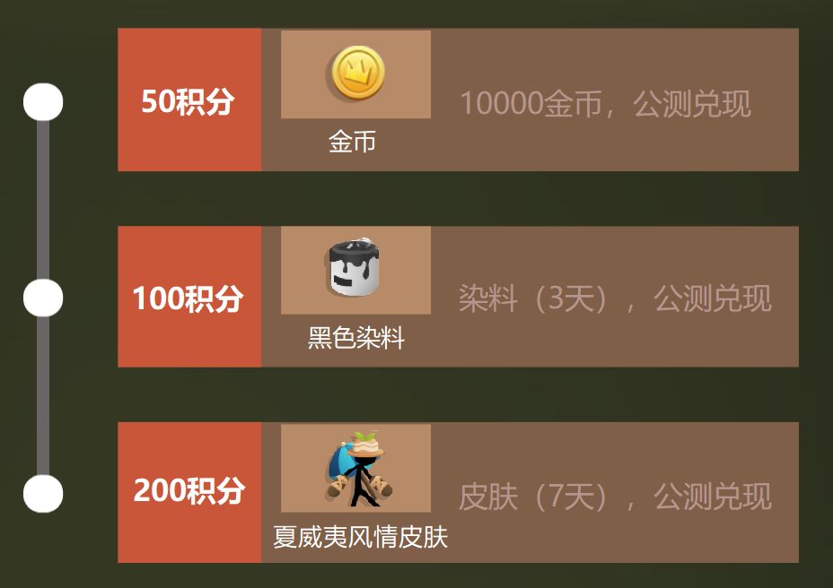 到公众号后台回复关键词:“积分兑换”+要换的奖品名称,即可收到心仪的礼品。现在开始关注-签到-绑定-答题-开箱素质五连,公测开始时即可手握10000金币巨款、浑身散发着漆黑的气场,还身着橙色品质的皮肤!想要赢在公测起跑线前的火柴君可要抓紧时间了!