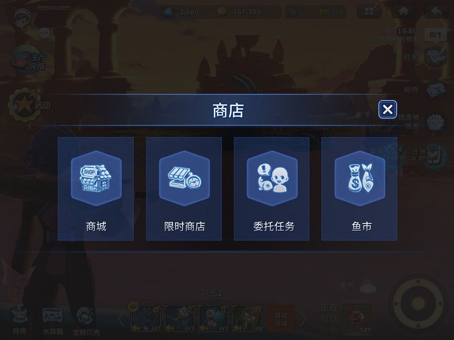 “商店”菜单分为四大部分:商城、限时商店、委托任务和鱼市,接下来我们就依次了解一下这些系统。