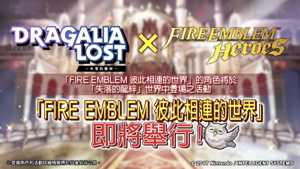 影片的最後,官方則是宣布將與《聖火降魔錄 英雄雲集》舉辦合作,推出「FIRE EMBLEM 彼此相連的世界」的角色將於《Dragalia Lost ~失落的龍絆~》世界中登場之活動。