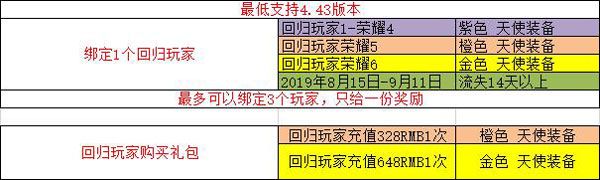 5. 招募活动期间,回归玩家充值328元,绑定的活跃玩家即可获得一件橙色天使装备。