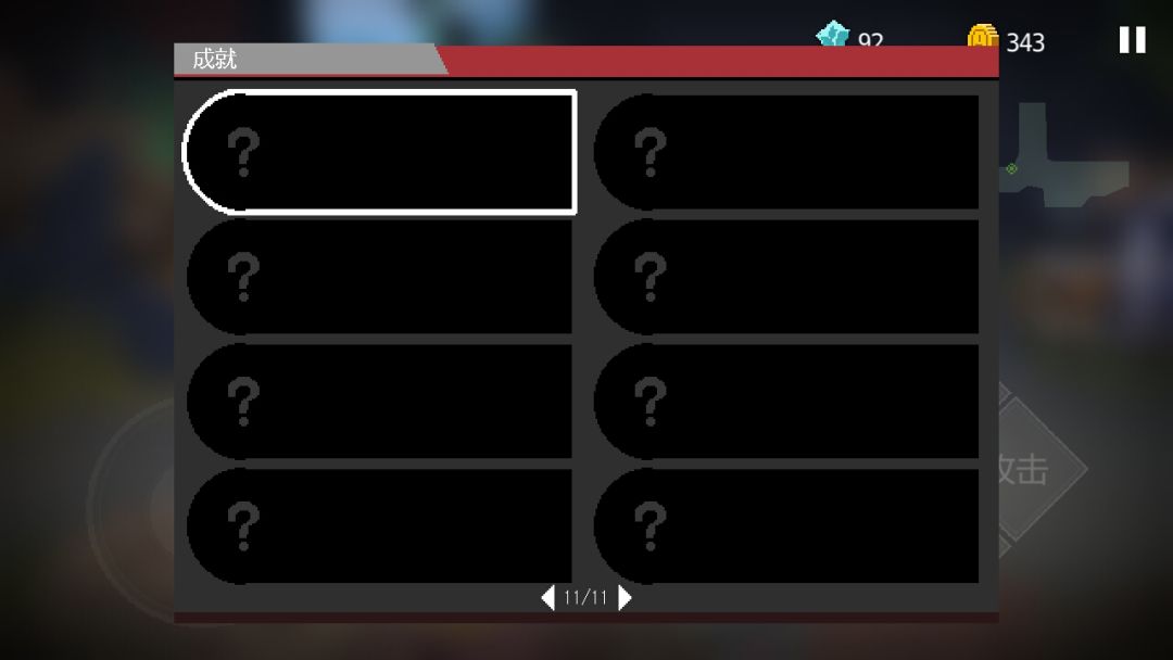 然后我就想,诶如果我全程不攻击就格挡把他击败是不是能获得11页里面的成就,于是在第一局的时候我也不知道打(挡)了多久他还剩下1/4血的时候我一失误死了,然后再开第二局终于把他耗没血了