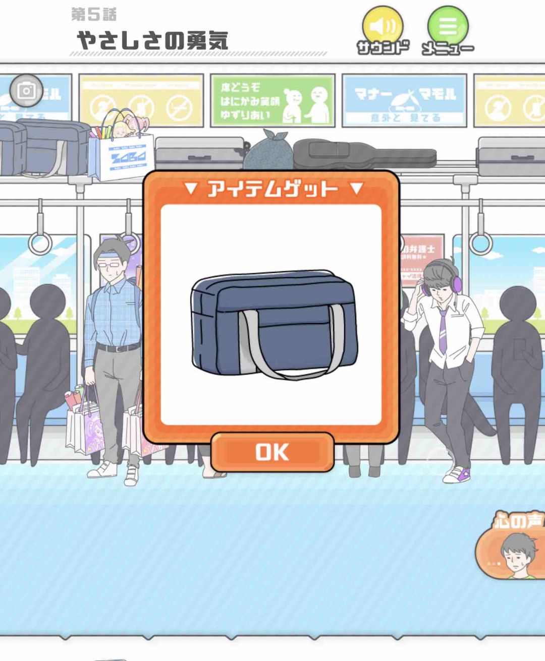 善良的男主想给人让座,但是要么被拒绝,要么被无视。捡起右边听歌小哥脚下的包,把它放到这个小哥正上方的架子上,挤掉行李架左边的购物袋,左边的衬衫小哥没办法把它放回去,只能咬牙一起拿着,这时候再给他让座就可以了