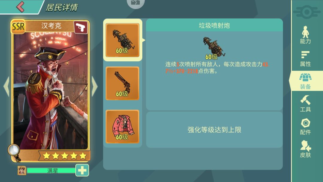 配件首推小丑,由于汉考克大招较快,需要配合莎拉或者小黑使用,以达到稳定增伤的目的。