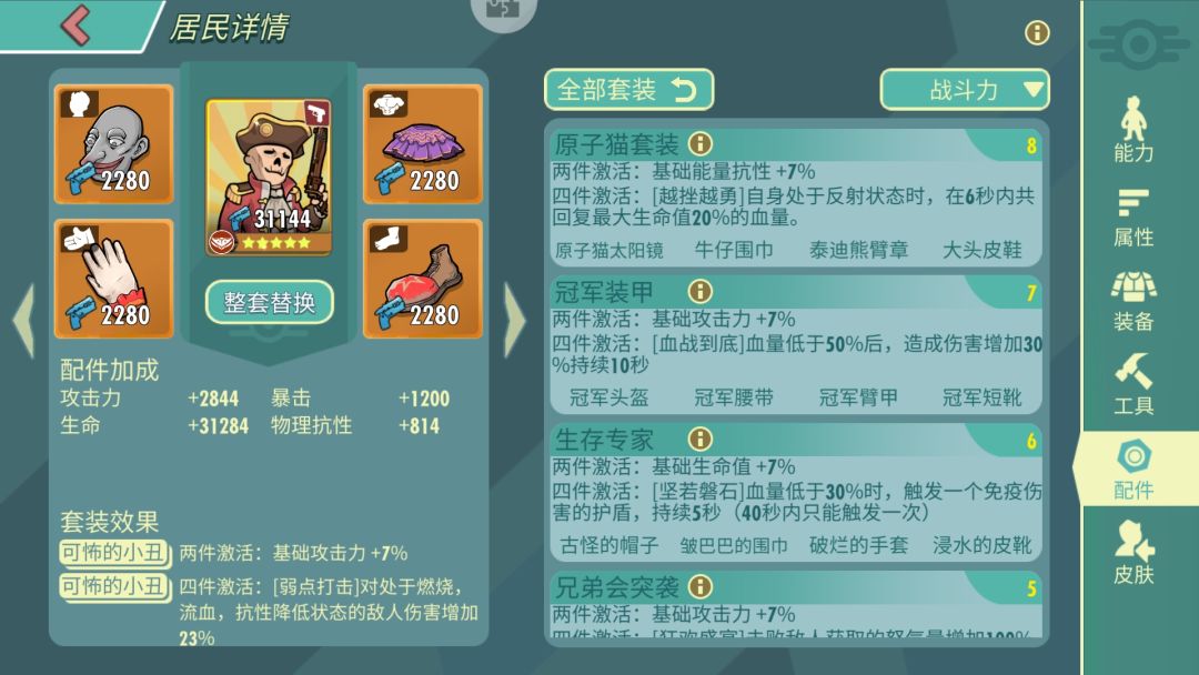 推荐配件:小丑,冠军,瘟疫。