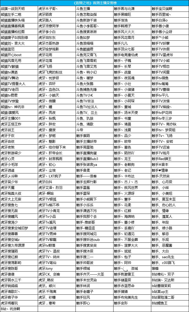 附:《救赎之地》技术首测主播荣誉榜如下: