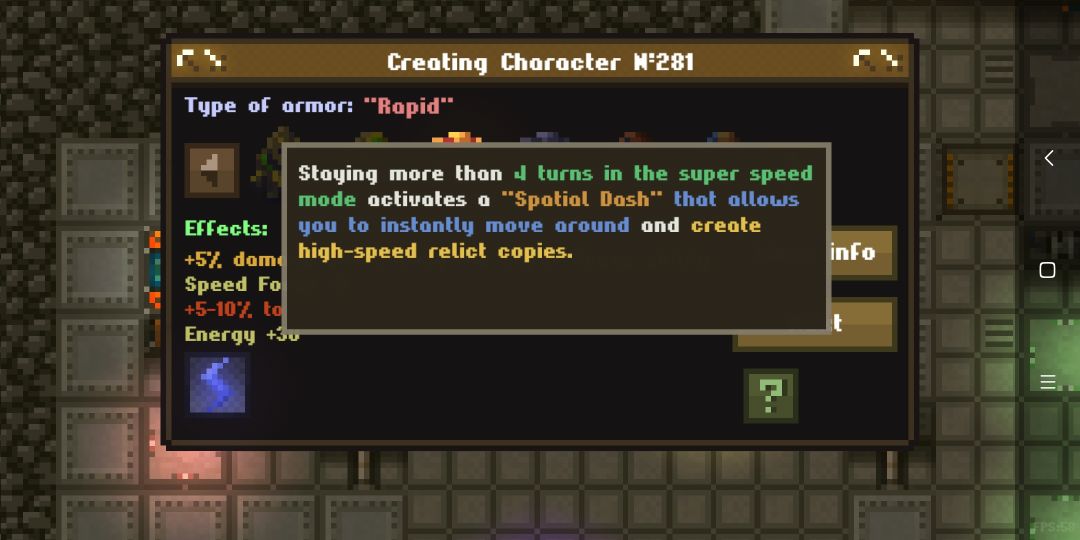 玩了下重做后的rapid,开技能的第五个回合获得额外效果(超过四个回合),可视范围内瞬移,走过的地方会留下一个幻影,而且幻影会自主攻击敌人!但是蓝耗巨大,满级energy consumption就算不攻击开着神速力走5格都要二三十点能量,就别说攻击了,如果蓝耗和extended battery没点满怕不是开一次技能直接清空蓝条,所以,我猜对了,技能很强,续航很弱,非常的鸡肋