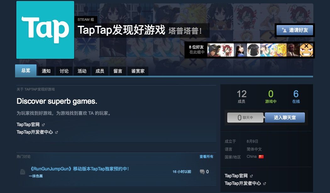 在TapTap发现好游戏,现在在Steam你也同样可以关注TapTap官方组,与版主好友一起发现更多PC端好游戏!