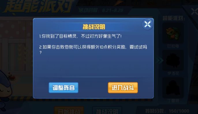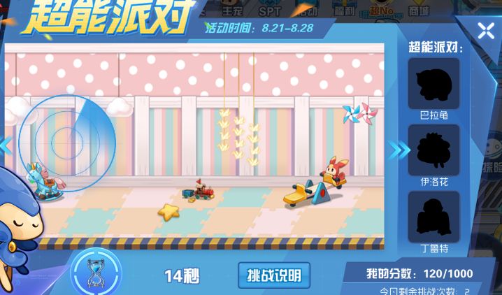 首先我们注意看一下规则,每次挑战时间为30秒,每天免费挑战3次,找到精灵积分+20,找不到+5,意外奖励则是赛尔豆和药剂等。1000积分则可领取精灵
