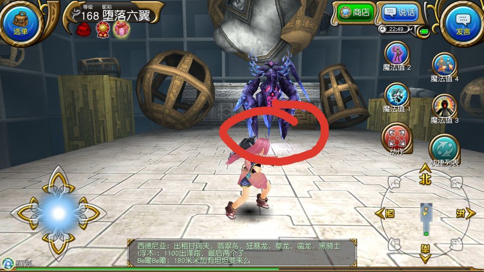 居要注意的是,boss有时候会给你一个冰冻,在它给你上这个冰冻之后,会放地图炮(天火),而你这个时候只要用控制技能打断他一下,就可以断掉它,使它放不出来地图炮