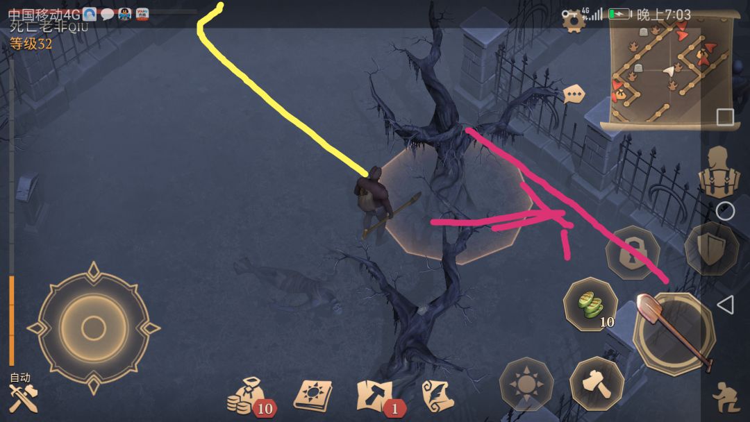 红线处可以将守箱子的两个怪勾引出来一个一个干掉,可以剩下不少血,沿着黄线先把面对着自己的第一个怪拉出来干掉,第二个贴墙背刺即可,剩下的忘记截图了,待会儿发在下面,第一次写,难免忘记一些东西