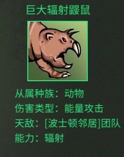 这个长得花里胡哨的,其实很恐怖,之前的发光海卡了我很久,让我狠狠心放弃了丹斯的养殖,转去喂食凯特了,技能是三次平a一次aoe带点燃效果伤害爆炸,很干净没有辐射。狂暴机制和死爪狂暴一样,这个好像没有不狂暴的,都狂暴,而且狂暴之后攻速比死爪更快aoe技能放的也更频繁,一不小心就会断档暴毙。建议凯特生存,凯德加李或者圣父,尼克或者派普都行,最好有厉害的外星人点几枪暴击就完事了。不要战力差太多了,凯特扛不住。