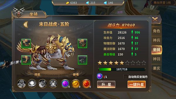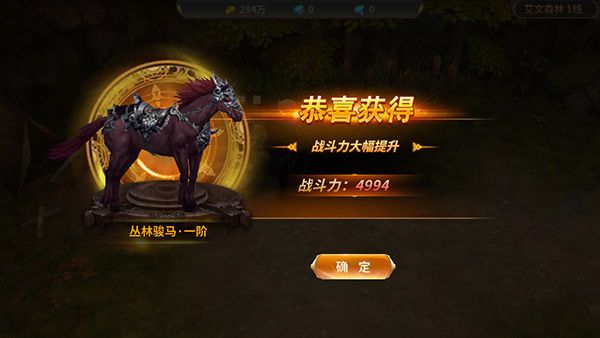 比如一阶丛林骏马可以进化成二阶重甲战马、三阶黑暗战狼、四阶幽灵烈豹、五阶末日战虎,以此类推,越高阶的坐骑战斗力越强。