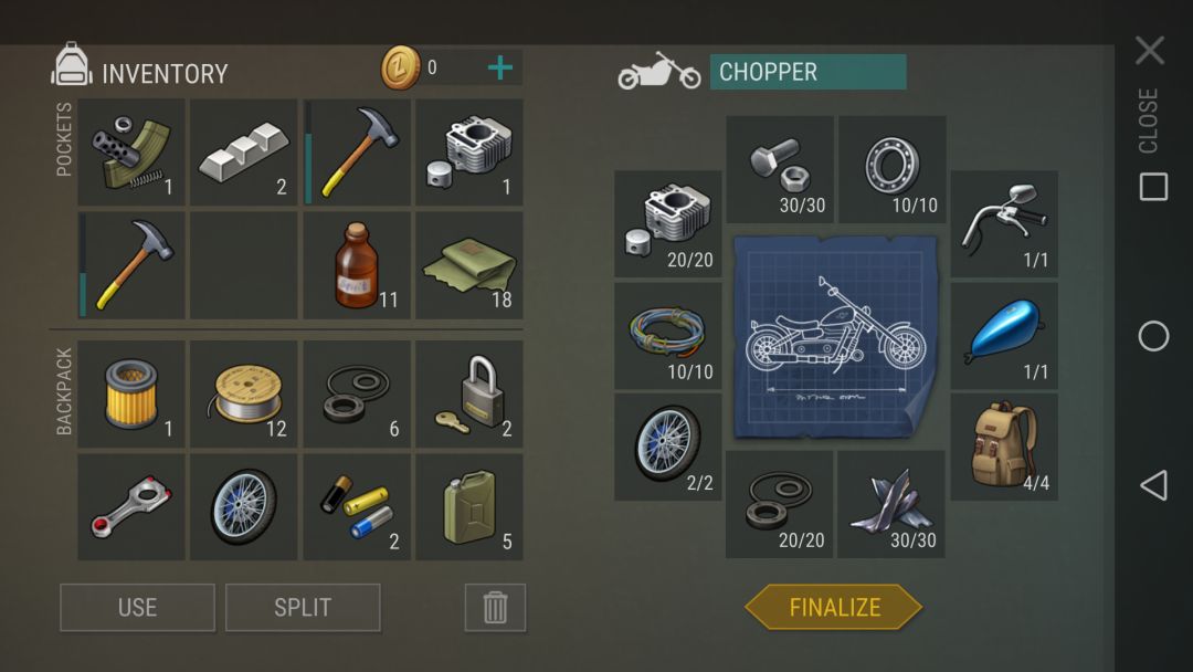 ①摩托自带除了油箱之外的三个空格(也就是说骑摩托出去可以多带三组东西了)