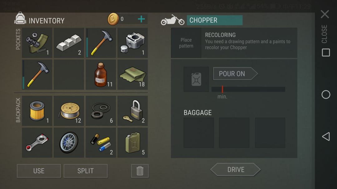 ②对于左上角NPC家出现的摩托,很遗憾的告诉那些想要偷懒的小朋友们,你们是开不走的😤(楼主没亲试,不过已经有人试过了,所以大家还是别做无用功了),不过咱们还是可以去揩揩油的😂(用空水瓶可以把那台摩托里的油搜刮干净,一瓶油=5点油)