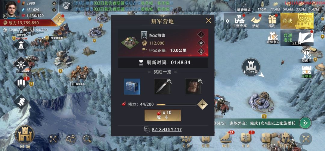 额外的,首次击杀各等级叛军营地还可获得各类加速等额外奖励。