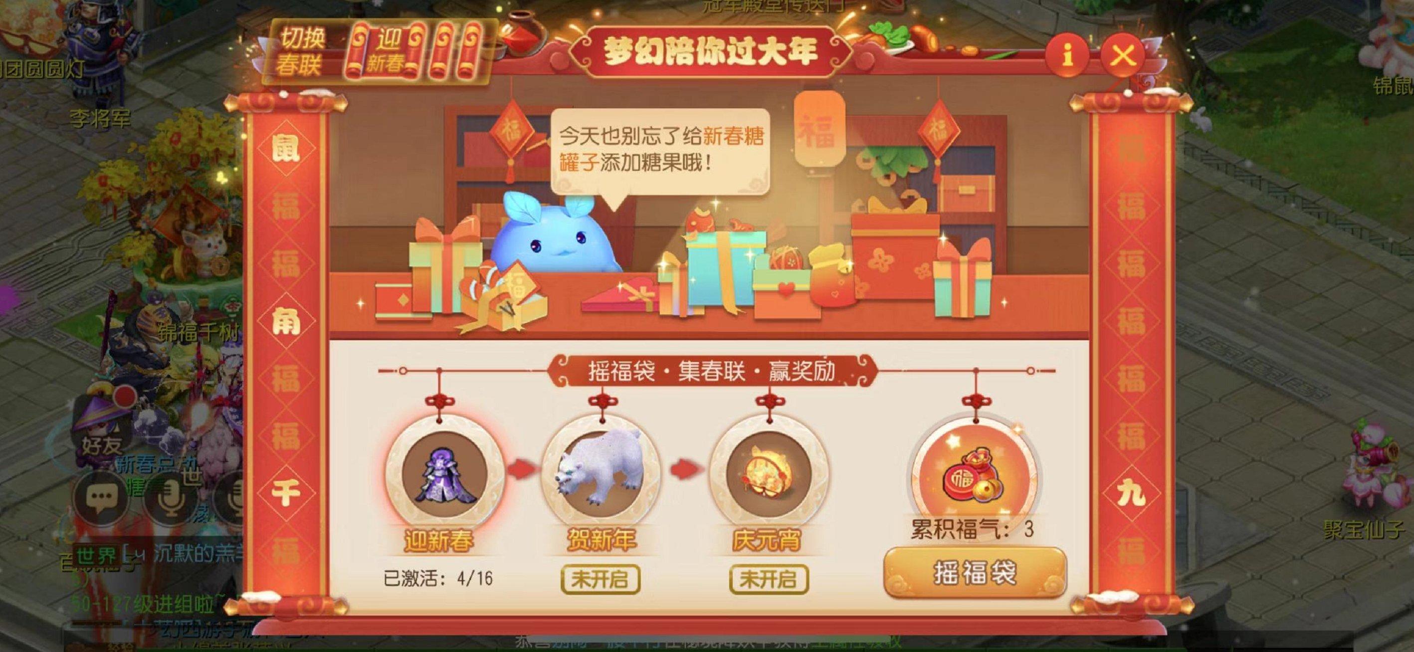 除了以上两大元宵节专属活动外,寻味家乡菜、新春开运礼、梦幻陪你过大年、新春百宝阁、积分商城等春节活动还在继续进行中。玩家可以在参与元宵专属活动同时,参与这些活动,解锁多重福利,为自己在这个春节,留下一段美好回忆。