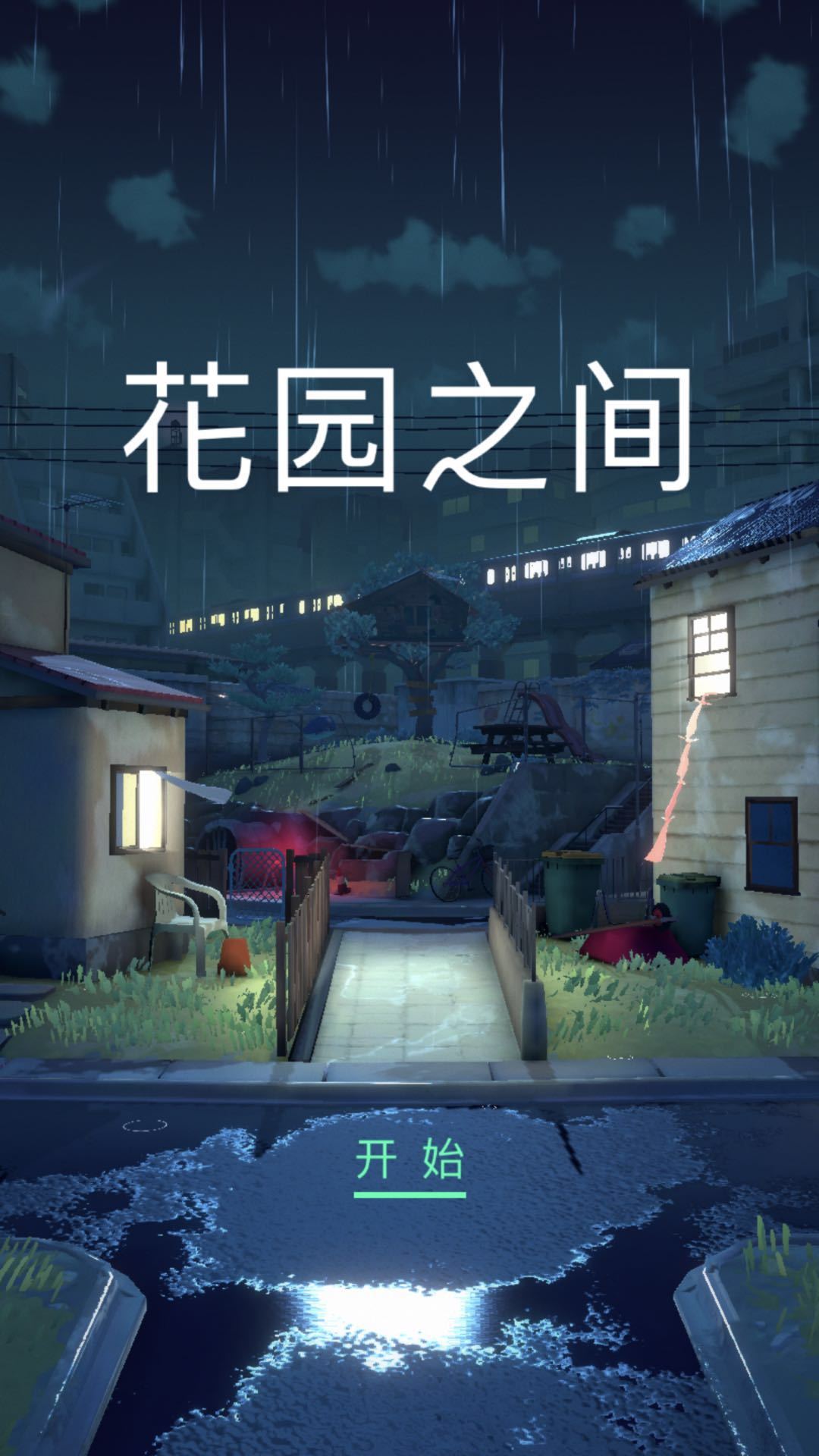 伴随着淅淅沥沥的雨声,列车急速驶过。在这样一个雷闪交加的夜晚,我站在小路这头,点击开始便走进了《花园之间》那间属于童年伙伴的秘密基地——树屋。