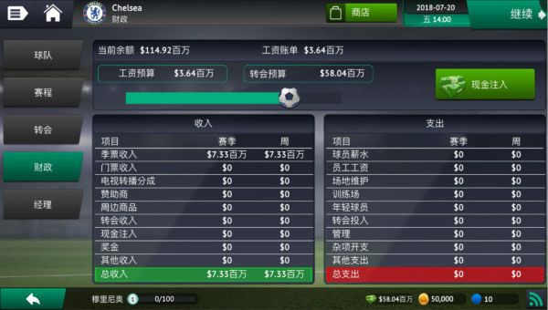 这是《梦幻足球世界》中仅有的初始资金过亿的球队,选择这6支球队中的一支,相当于在起跑线上就已经领先群雄了。算上初始的这一亿多资金,再卖掉队里一些你不喜欢的老将(因为老将随着年龄增大,数值会跌的很快,身价也会狂跌,所以如果有你不喜欢的老将,尽早卖掉,以免贬值),小编是车粉,自然选择执教切尔西,就以切尔西举例: