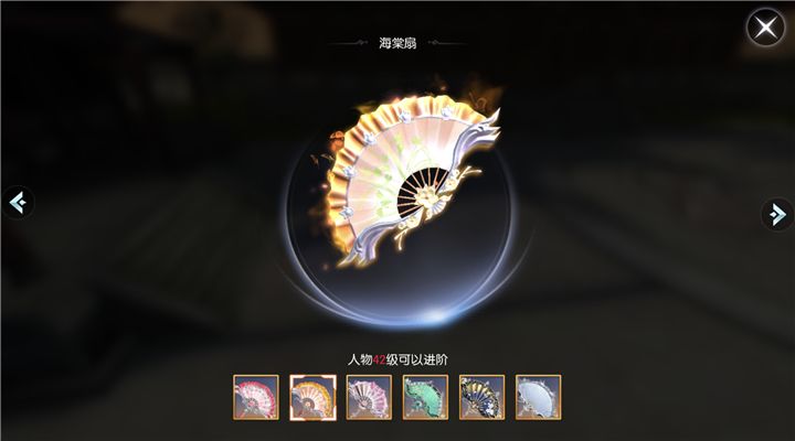 海棠扇看似朴实无华却蕴含着神秘之力,就像海棠花一样。平整的扇面给了它一点中规中矩,但是波纹状的扇尖让它多了点装饰,连接处的金属花型也让它显得有些精巧,虽然它的扇骨与灵犀扇非常相近,但是它的扇柄中心处却有着一对漂亮的海棠花,两边更是各伸出一枝海棠花枝,这瞬间就让这把中规中矩的折扇灵动了起来。海棠扇浑身有着与太阳一样的暖光,一看就知道它的不俗。