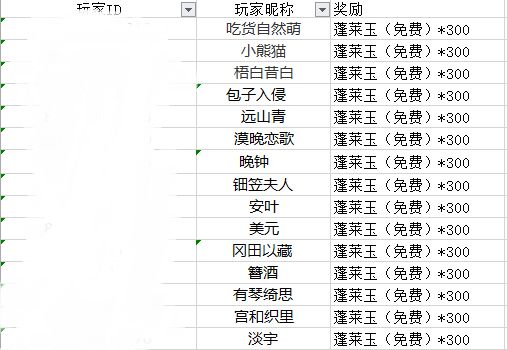 恭喜以上小伙伴获得蓬莱玉(免费)*300,奖励将通过邮件直接发放。还请小伙伴们注意邮箱提示