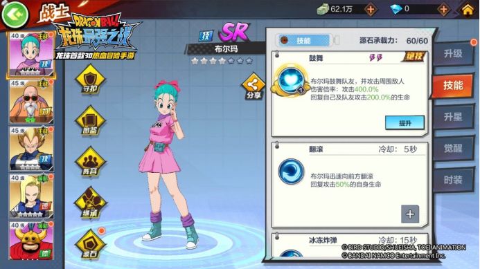 鼓舞:布尔玛鼓舞队友,并攻击周围敌人,回复自己及队友攻击210%的生命