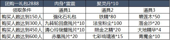 【活动简介】活动期间内,道友们可购买活动界面的团购商品。当购买团购商品的人数达到一定数量时,购买过该商品的道友们可以额外领取相应奖励。