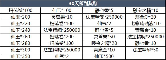 2.签到奖励:签到1个月可获得1000000法宝精魄以及其他丰富的奖励