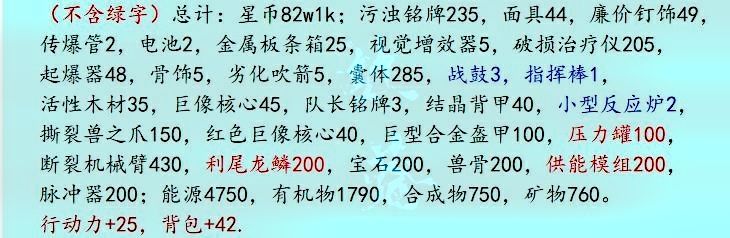 ⒈绿字合成物品为日常委托、任务所需物品,一般可在原图获得或者较易获得,不计入总计。