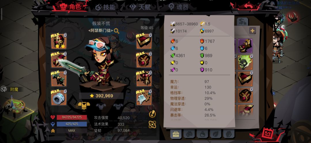 2、作为一个大剑,打8、9层的时候最好还是洗一下技能,洗成战神三吸(之前遇到好词条不洗也是可以过的,但很险,而且比较耗蓝)。下面是我打1-7以及10和BOSS的技能加点: