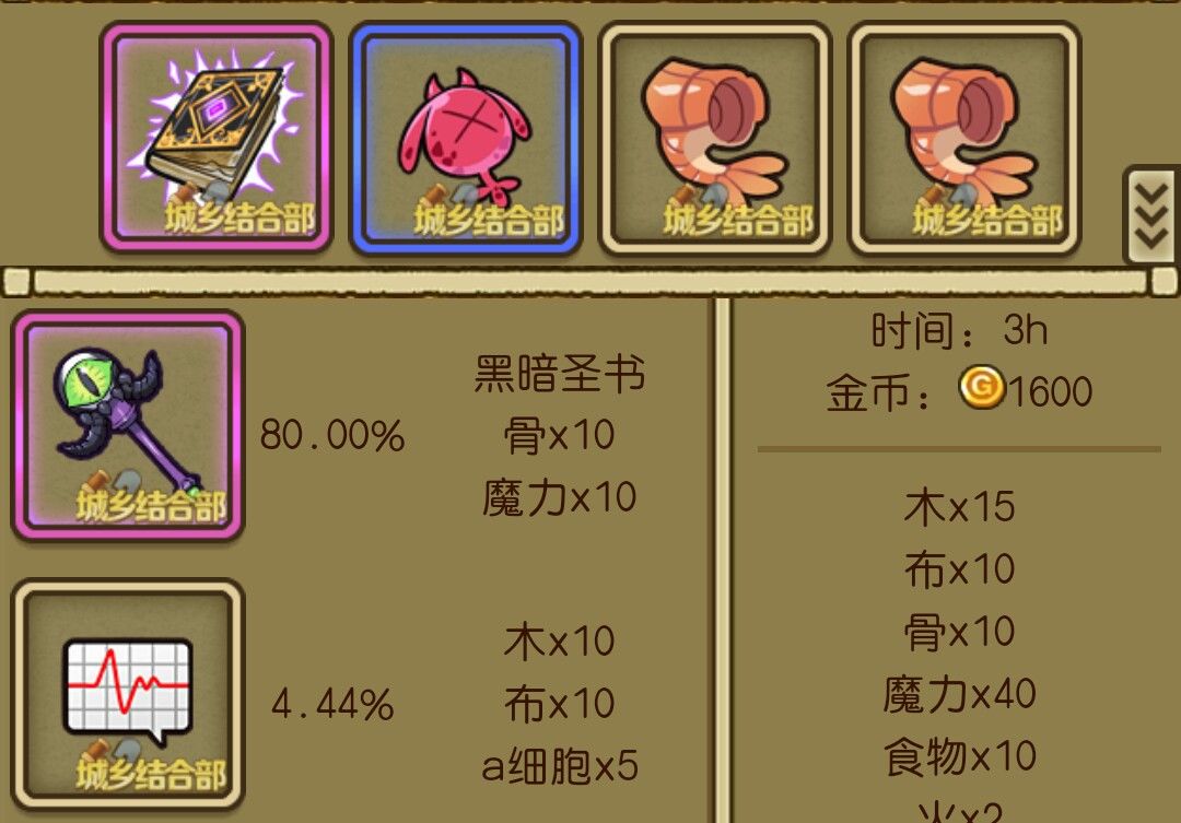 上面这三个配方是把成本和成功率做了一个平衡,1600金的成本和80%的成功率都是可以接受的。